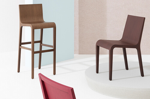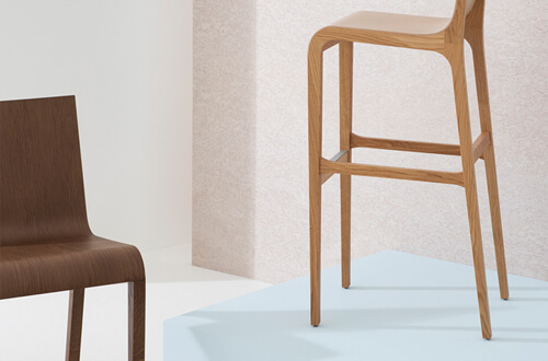 In Foglia, Marco Ferreri explores the idea of  ​​lightness all the way until achieving  a very thin wooden shell, a continuous surface of a millimetre and a half on a solid wood structure. Solid yet fluid, elegant and with character, this chair has become an icon and the model for many ultralights to follow.