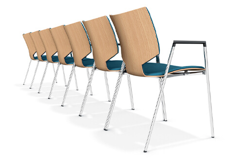Lynx I is available with and without armrests. Both versions can be linked together. Lynx stacking chairs are very suitable as indoor chairs, school chairs, conference chairs and even canteen chairs.