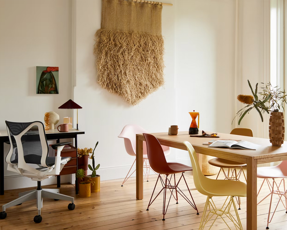 For the Herman Miller x HAY Collection, the Danish design house HAY thoughtfully reimagines Eames classics in new materials, patterns, and