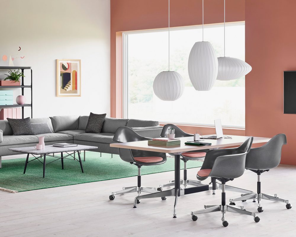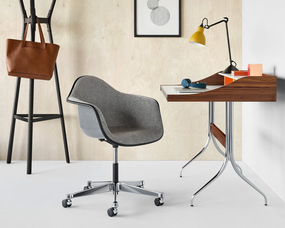 It beckons with an aesthetic and biomorphic shape that have become archetypal: the Eames moulded shell, prized since 1950 for inventing a new paradigm for simple and comfortable, sophisticated and playful seating. In this iteration as the Eames Task Chair, the iconic chair steps up its service as a desk chair that provides effortless functionality and flexibility.