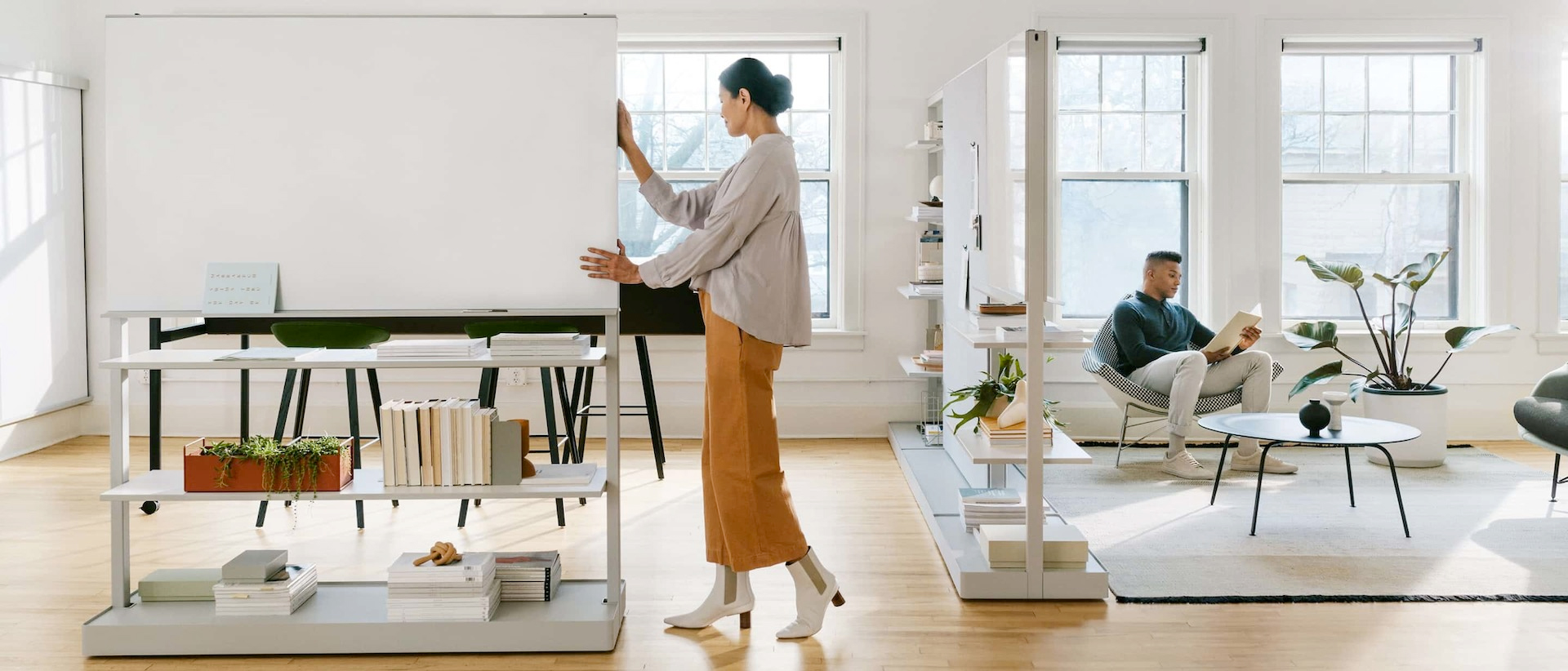 The OE1 Workspace Collection is designed to maximize personal freedom and flexibility. Pieces are made to be movable and adjustable—so individuals can find or create the space they need, and get to work.