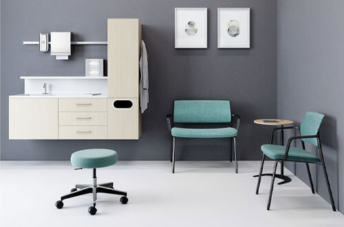 A member of the Verus family of chairs, Verus Plus can be combined with Verus work chairs, stools, and stackable side chairs for consistent performance and aesthetics across the workplace. Using a mix of Verus Plus and Verus Side Chairs in your healthcare spaces meets universal design guidelines for accommodating patient sensitivity.