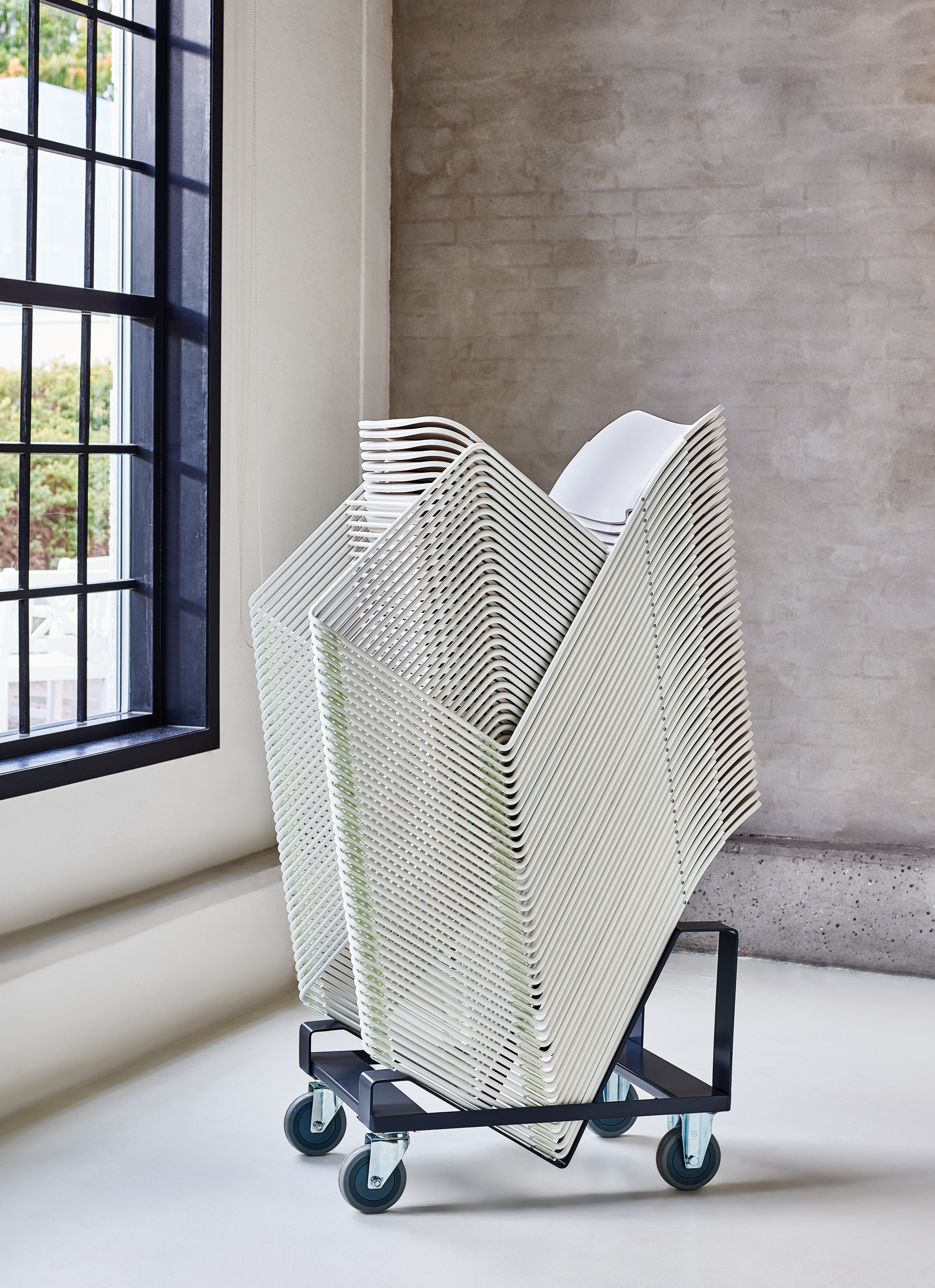 STACKING 40/4 SIDE CHAIRS | Polyamide, Veneer, Metal: 40 on dolly within 1465 mm. Upholstered: 25 on dolly within 1500 mm.