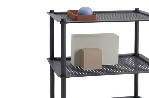 The Flow Trolley brings the concept of functional design into a modern context through its grooved trays in embossed metal for a