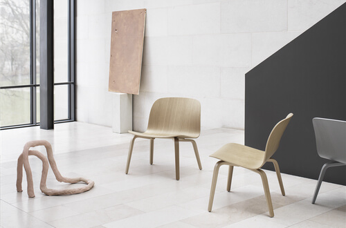 The Visu Lounge Chair provides maximum comfort in an unconventional Scandinavian silhouette with a sturdy base and shell in form-pressed veneer.