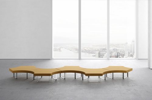 Longway is a sinuous and sturdy ribbon that designs an entire collection of modular upholstered seating, made of very different pieces of a unique style.