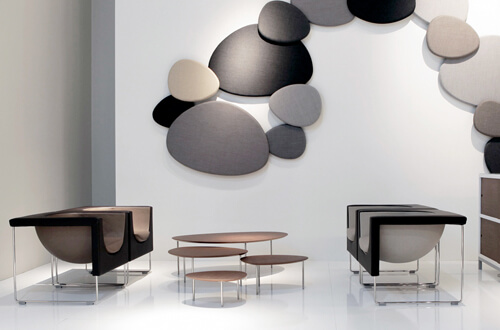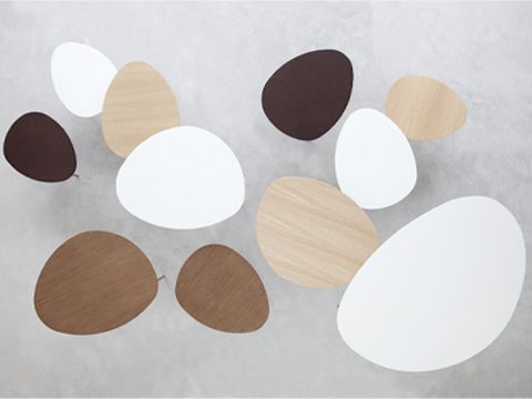 Eclipse sofa tables: the organic shapes found in nature have inspired the Eclipse nesting tables. Eclipse is composed of four tables of different shapes, sizes and heights. The smaller tables can be concealed under the larger ones and effectively disappear, just like a natural eclipse.